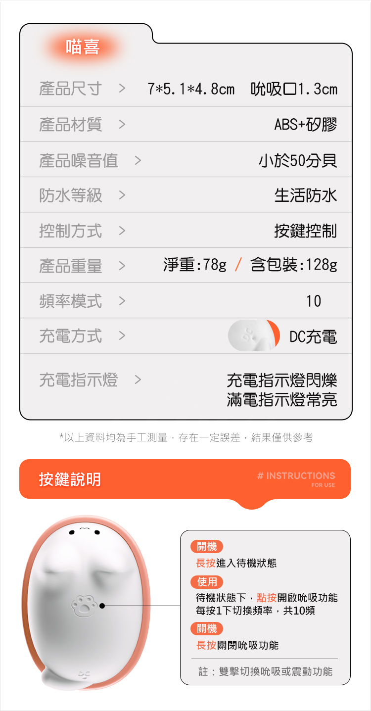 產品尺寸:7*5.1*4.8cm 吮吸口1.3cm